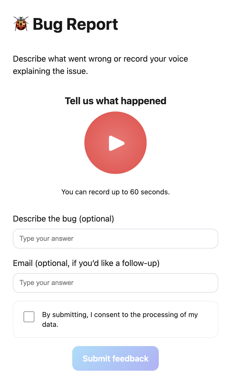 For SaaS teams to collect structured voice and text bug reports directly from users while using the app.